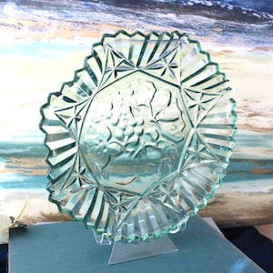 Vintage Godinger Silver Plated Fruit Bowl. It measures 11.5 inches across the top of the rim diameter and is about 10.5 inches tall. It has lots of patina and signs of vintage age. I have cleaned it and applied a lot of elbow grease and silver polish, which has made it shine again, but it does look like vintage, not "new". I personally find this very appealing, but please look closely at the photos to make sure it is what you like. The handle is beautifully ornate and has hinges so you can have it raised, or not, according to your preference.