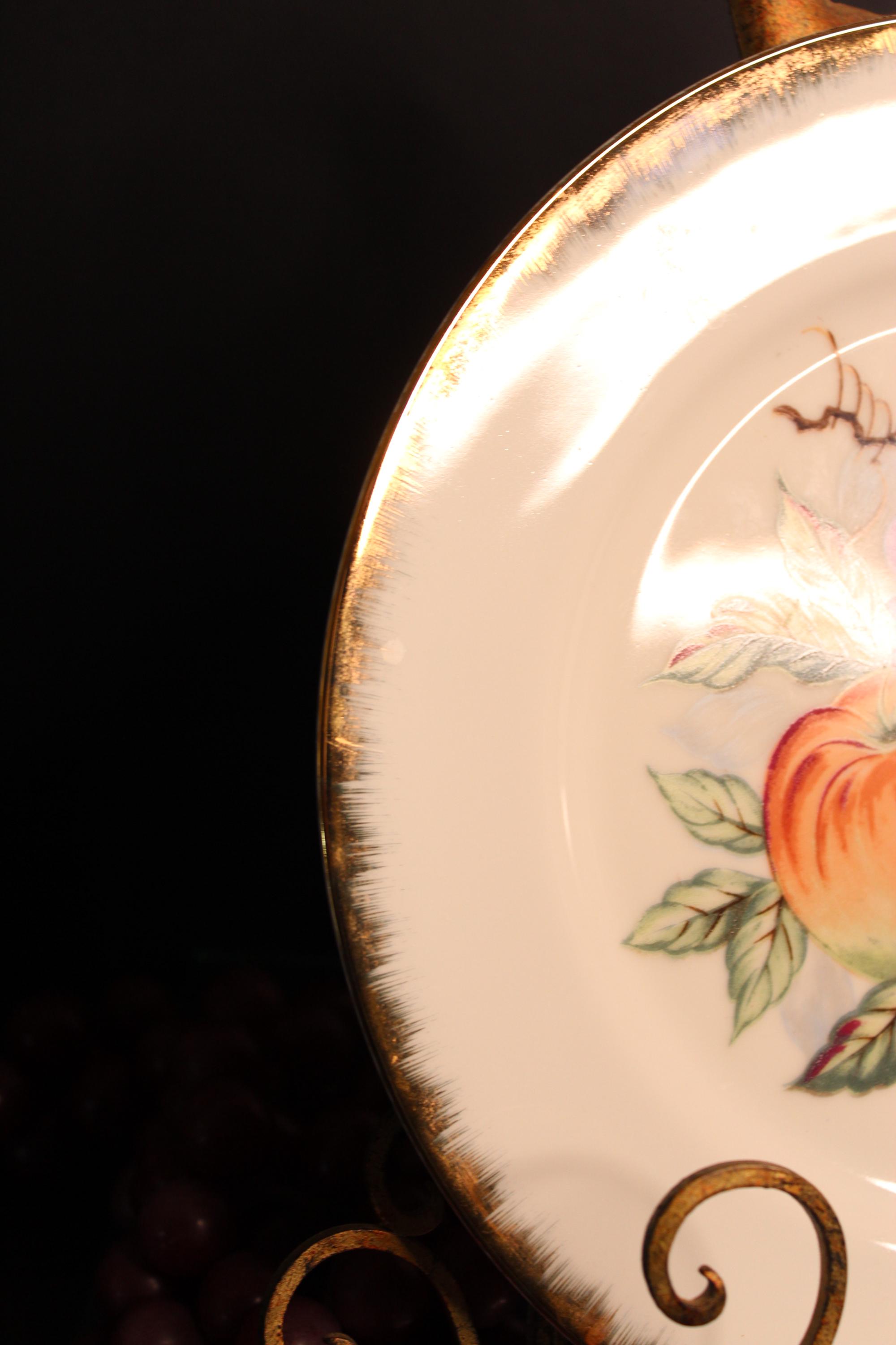 Vintage Decorative Numbered Wall Plate Fruit ARDCO Fine Quality Japan. 10.25-inch plate is hand painted in beautiful cheerful colors on a pure white background and edged in gold. All painted designs including the gold edges are intact and brilliant. No scratches, cracks or scuffs. Vintage pre-owned pristine condition. Was made in Japan.