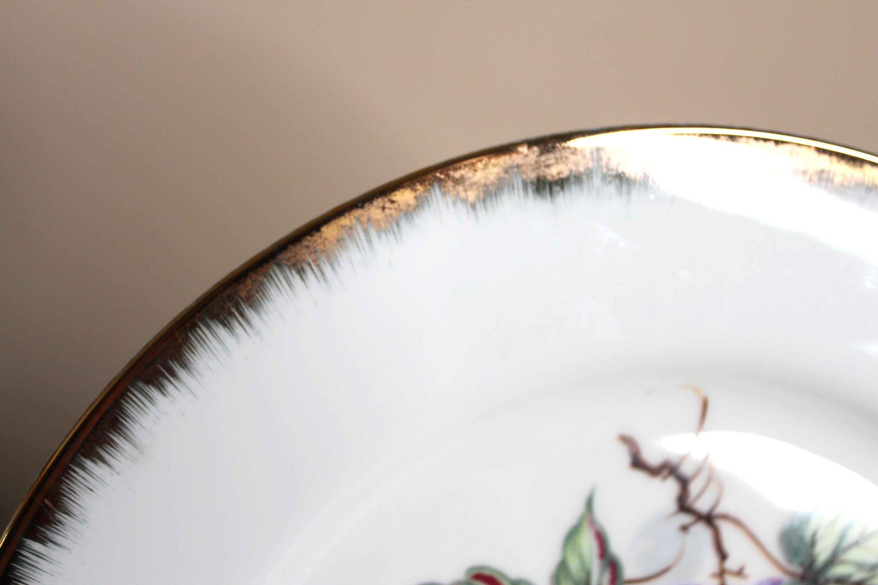 Vintage Decorative Numbered Wall Plate Fruit ARDCO Fine Quality Japan. 10-inch plate is hand painted in beautiful cheerful colors on a pure white background and edged in gold. All painted designs including the gold edges are intact and brilliant. No scratches, cracks or scuffs. Vintage pre-owned pristine condition. Was made in Japan.