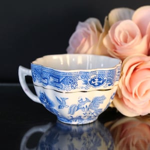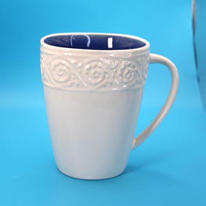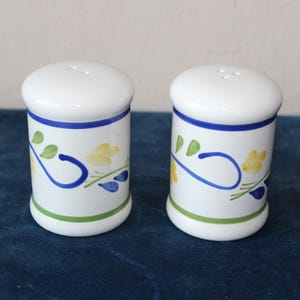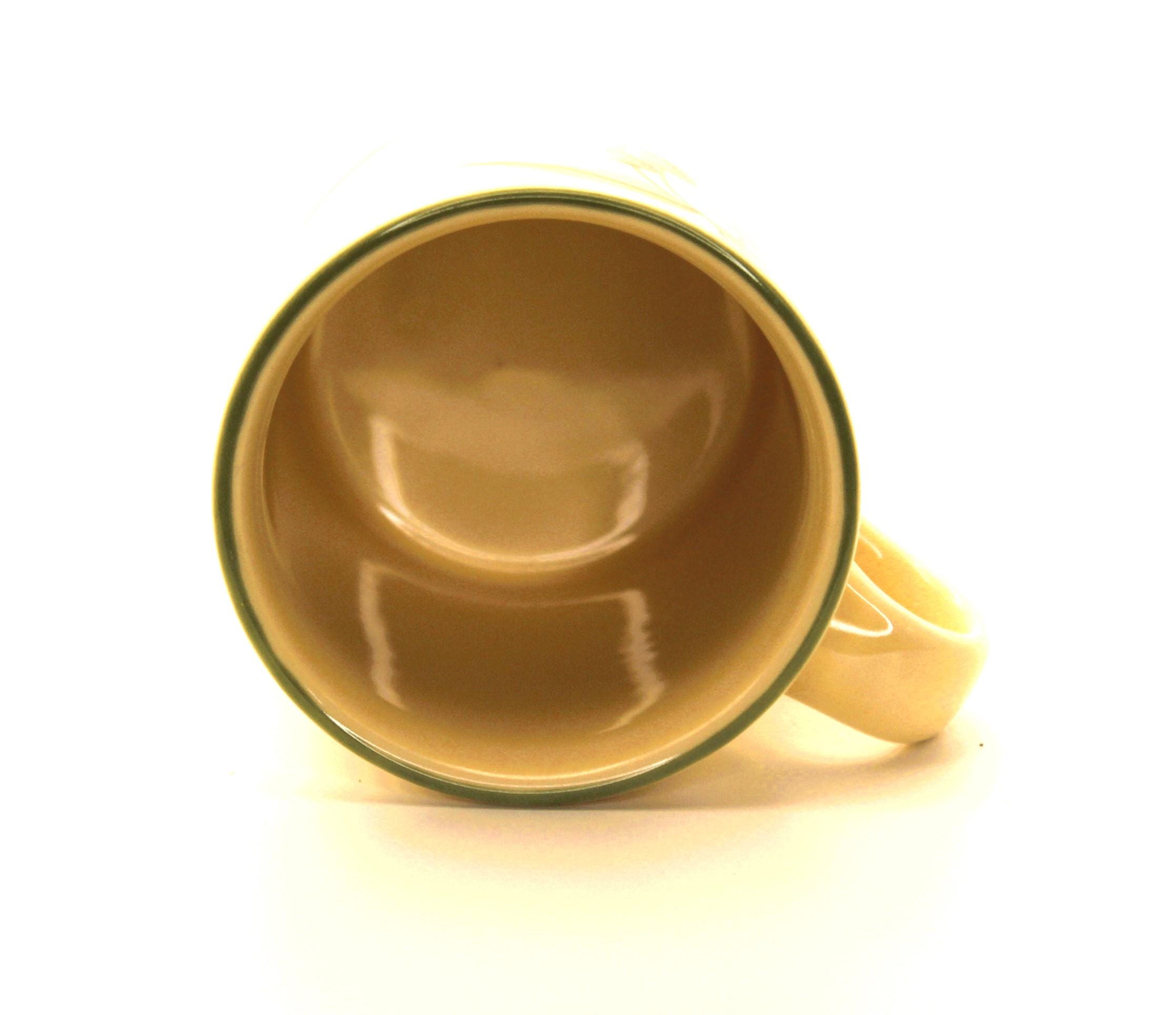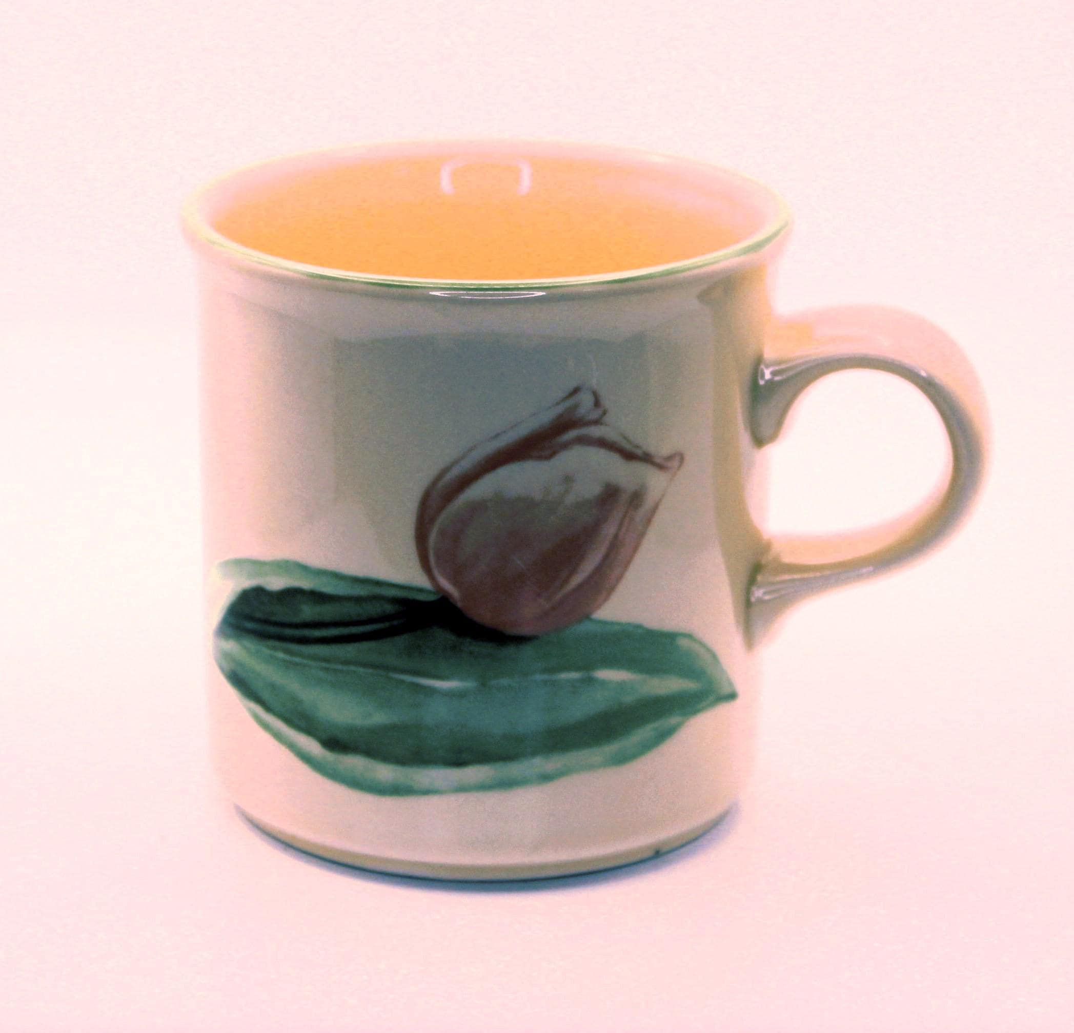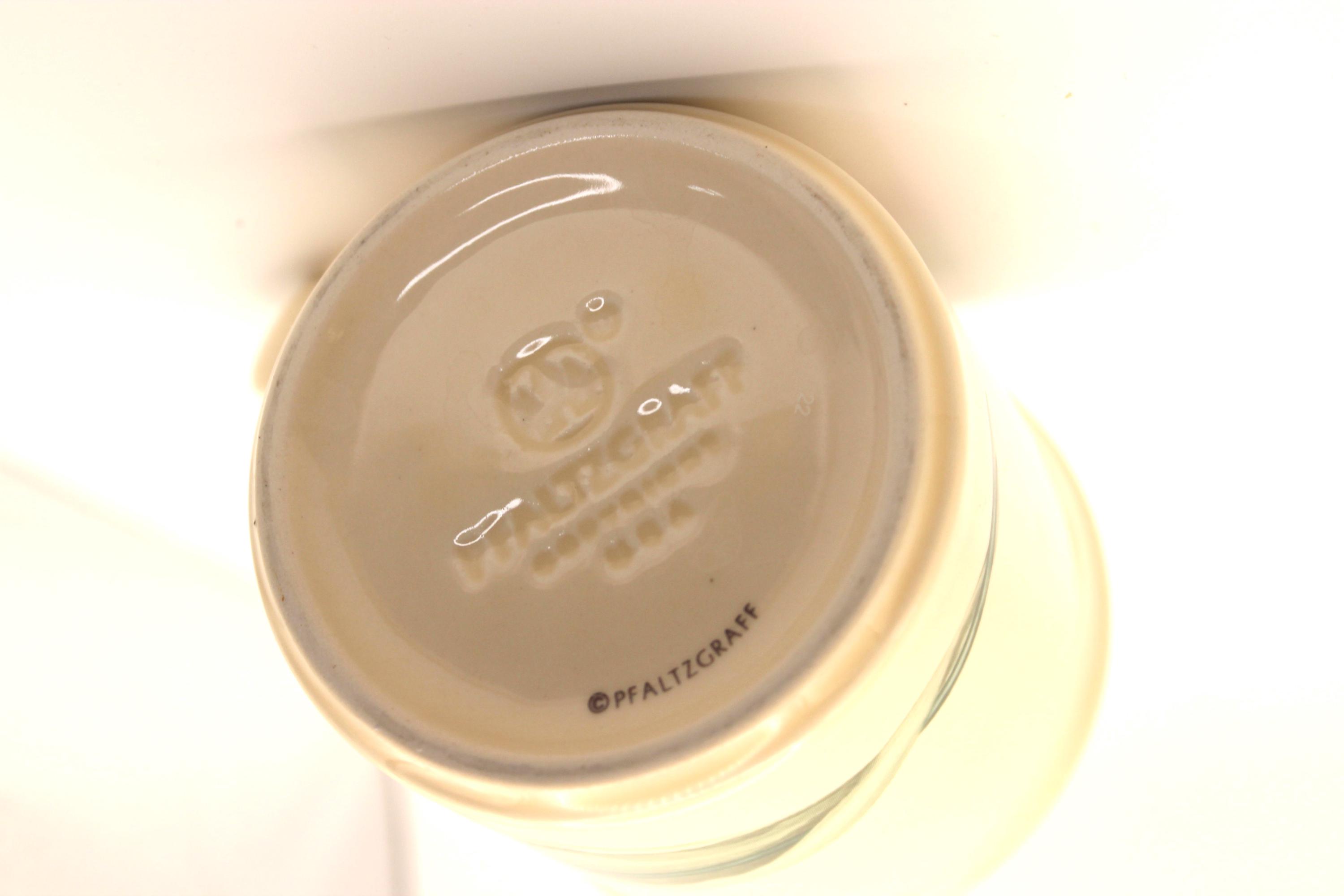 Replacement Vintage Pfaltzgraff Garden Party Coffee Mug. Adorable coffee mug is just precious with cherries on one side and tulip on the other. The base color is cream with a sage color on the rim. The graphics are pink and green. This was made in USA and has the Pfaltzgraff name embossed and printed on the bottom of the 10oz cup. It is in excellent pre-owned vintage condition. There is a very minor scratch on the tulip which I have a close up on in the photo.