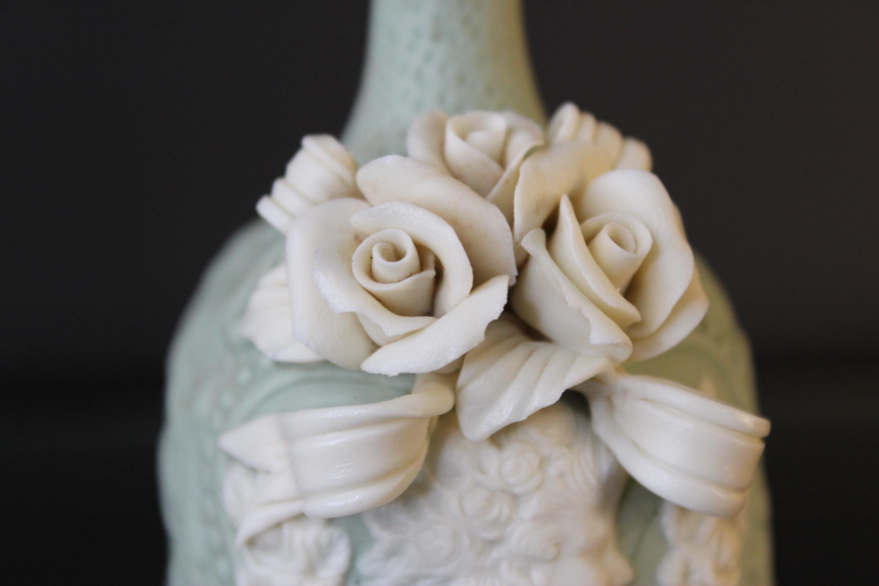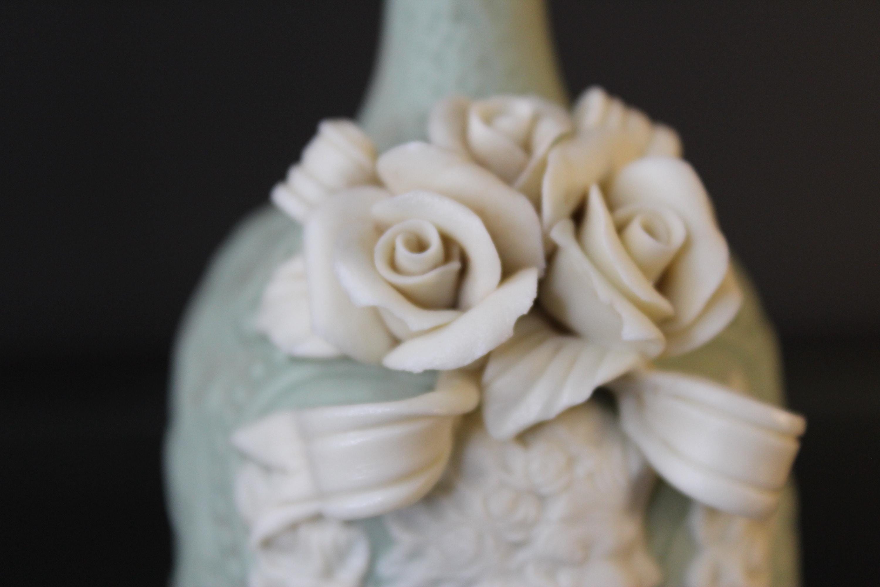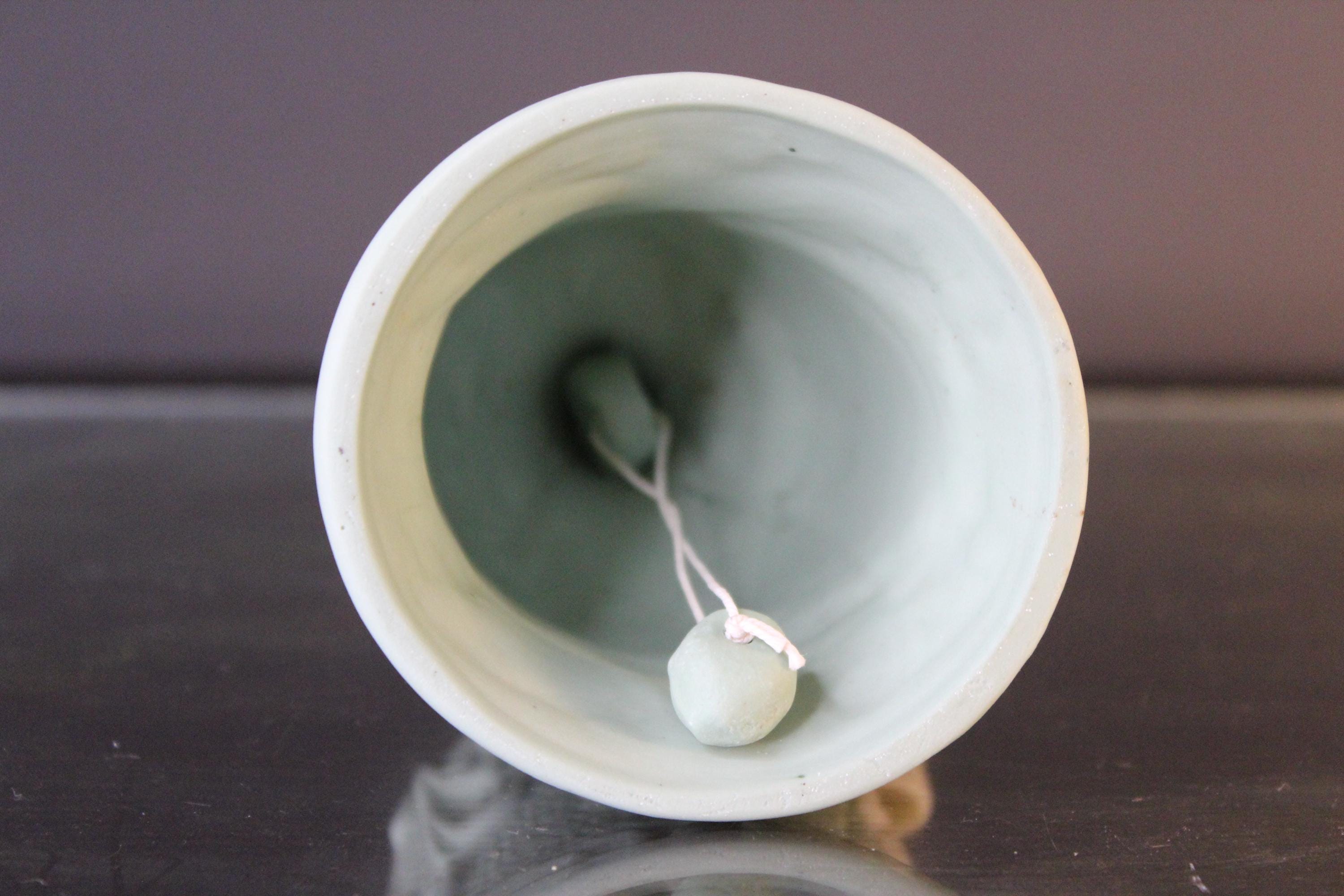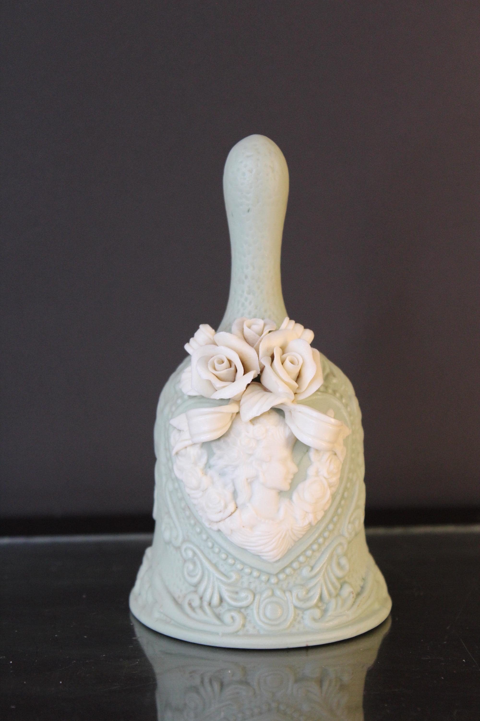 Vintage Victorian Cameo Jasperware Bell Collectible Off-White and Mint/Sea Foam Green, it measures 5.5 inches tall and is 3 inches wide. The variety of details on this piece are very lovely indeed. The clapper is original and intact. Please review the photos before purchasing. It is in excellent pre-owned condition. The price includes shipping!