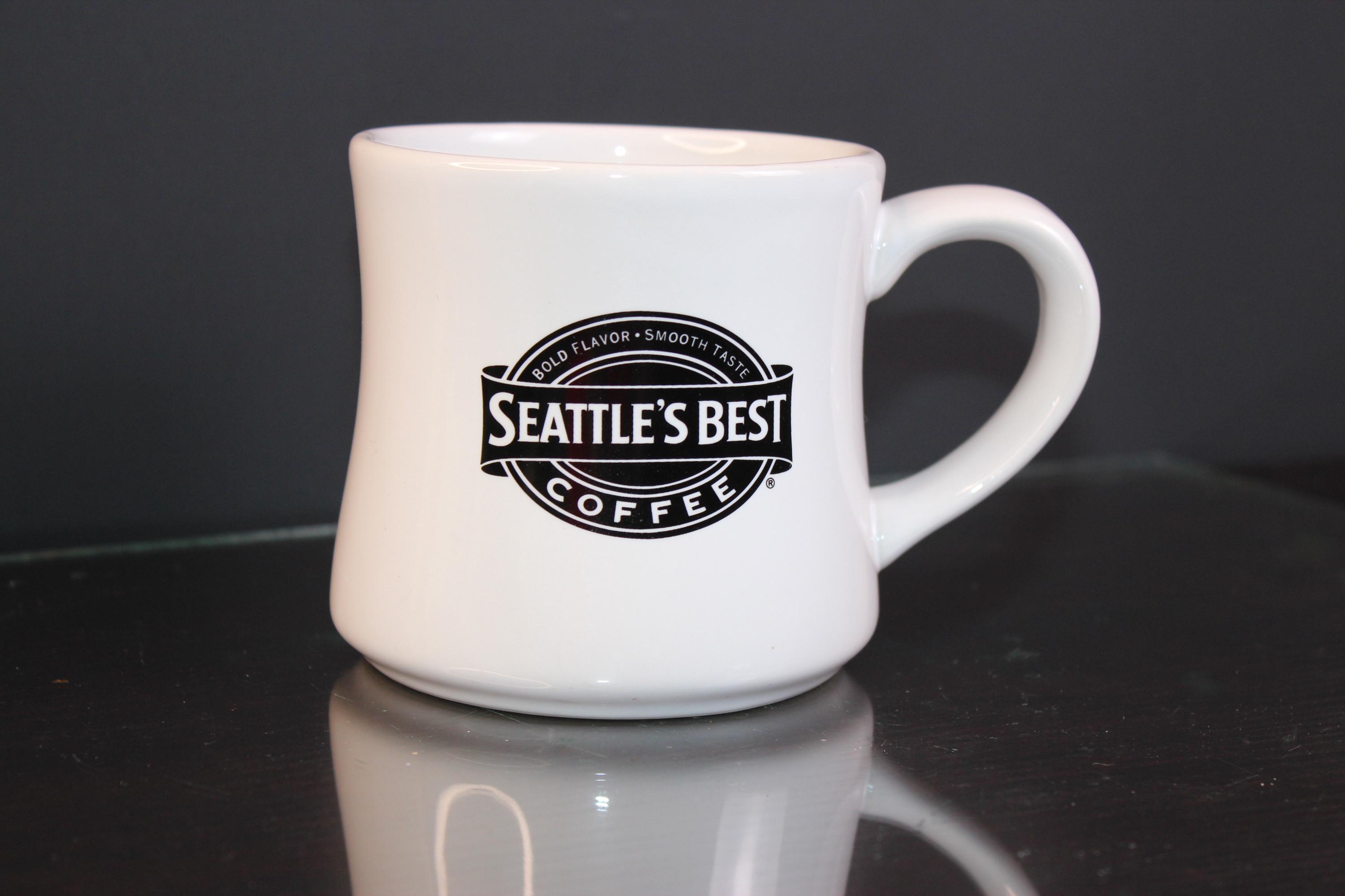 "Seattle's Best Coffee" is know for providing smooth roasted coffee. This mug displays the brand's logo, which was rebranded in 2010 by Starbucks, featuring a simpler design. This is in pristine pre-owned condition.