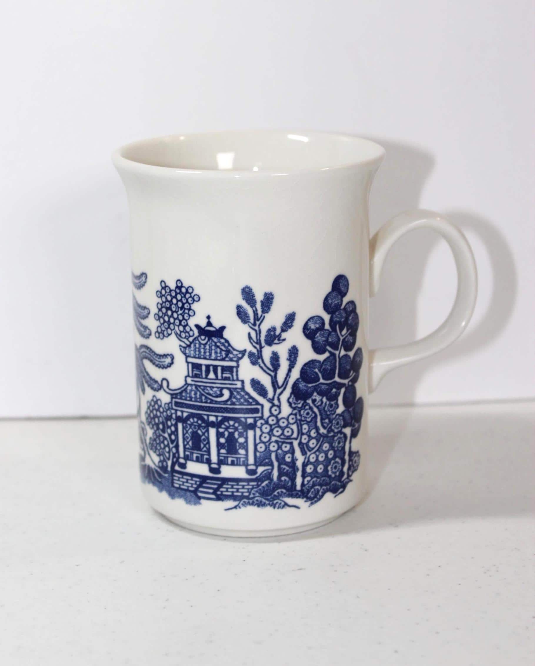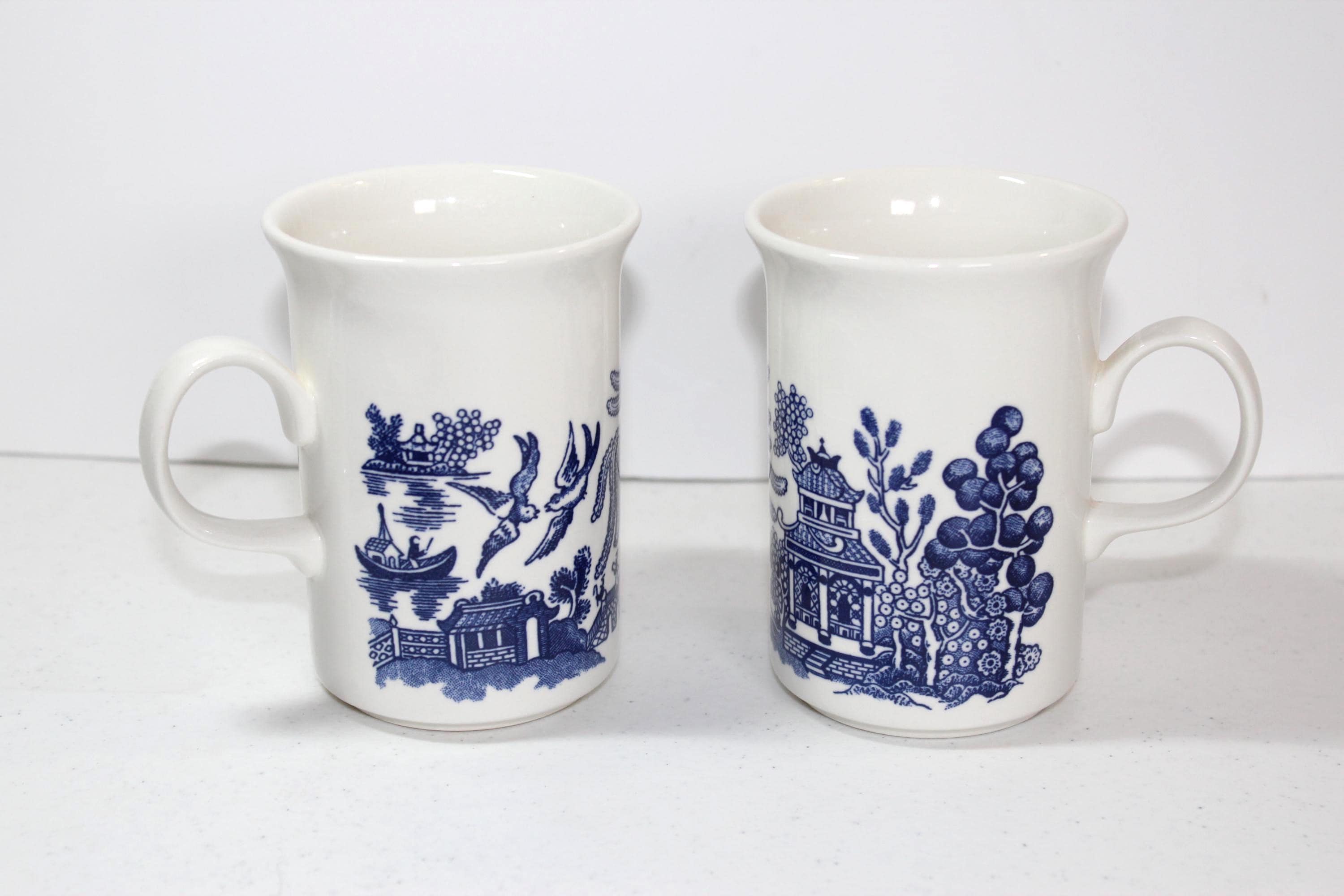 Very nice set of two vintage collectible coffee or tea mugs in the ever popular Churchill Blue Willow pattern. Ironstone made in England. Churchill England is embossed on the bottoms of each cup. This is a vintage pair that has no chips, cracks, or stains. The glaze does exhibit some crazing on both mugs. This pattern mixes beautifully with many other dishes and pottery patterns and colors, as well as a happy addition to your existing Blue Willow collection.