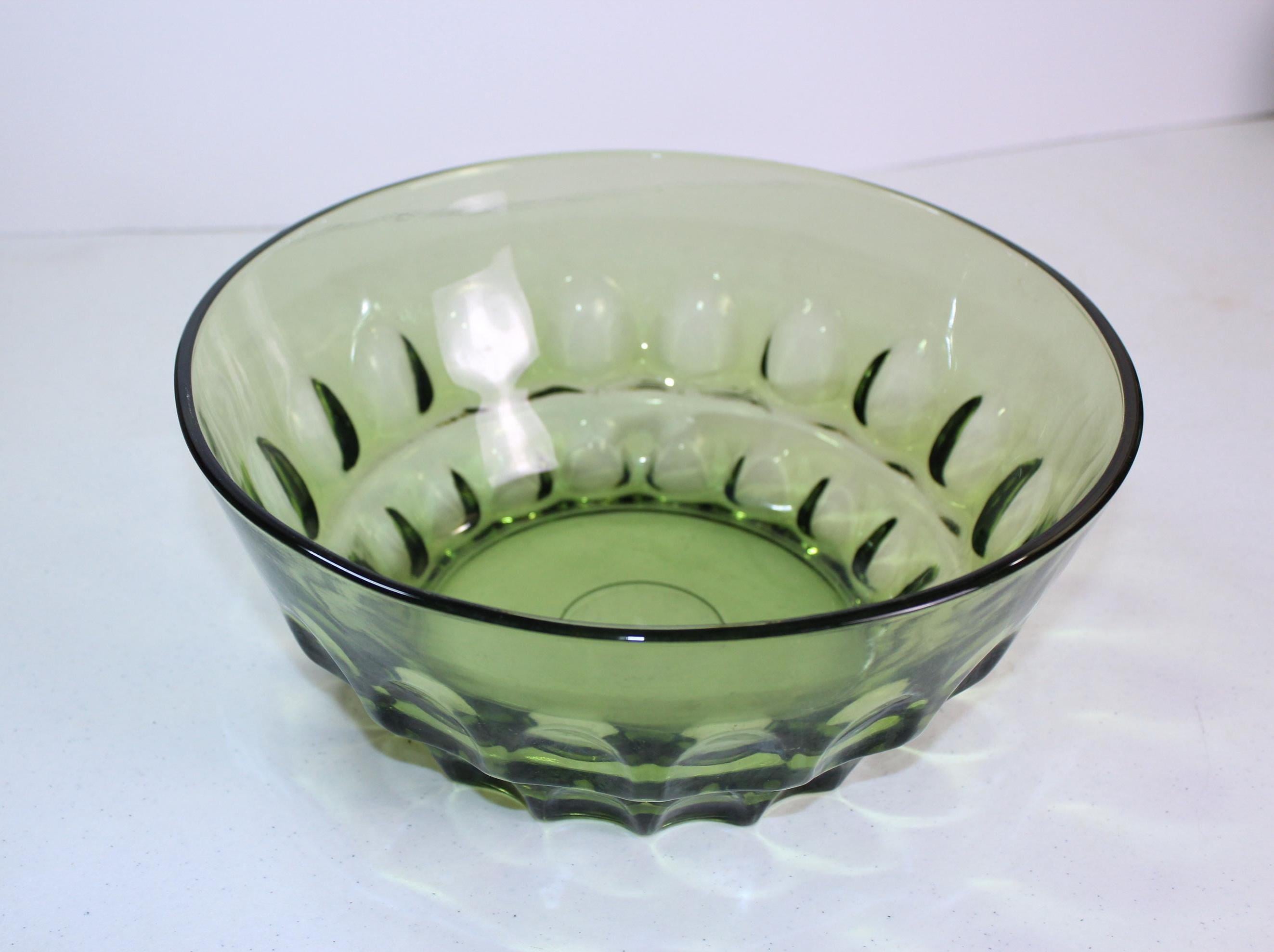 This is a beautiful example of iconic avocado green serving ware from the 1950's. It is a large 10 inch wide x 4.5 inch deep bowl suitable for serving at your table. It is wonderful for display or a centerpiece as well. It is in pre-loved excellent condition.