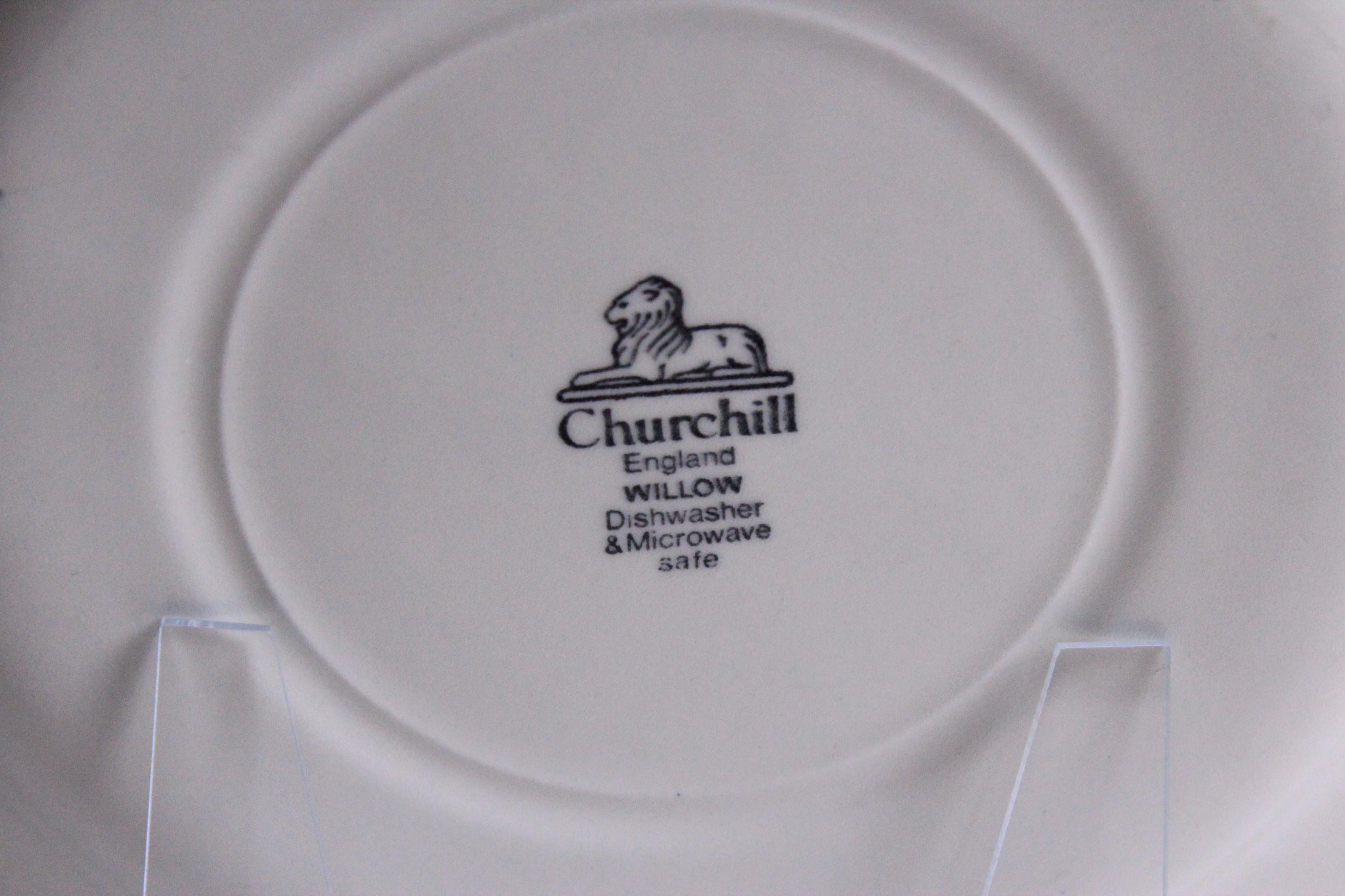 Excellent condition 9.25 inch dinner plate. Stamped on the back Churchill England Willow. No chips or cracks. Vibrant blue and white. Please make sure this is the correct size for you before purchase. There are different sized dinner plates and this one is 9.25 inch.