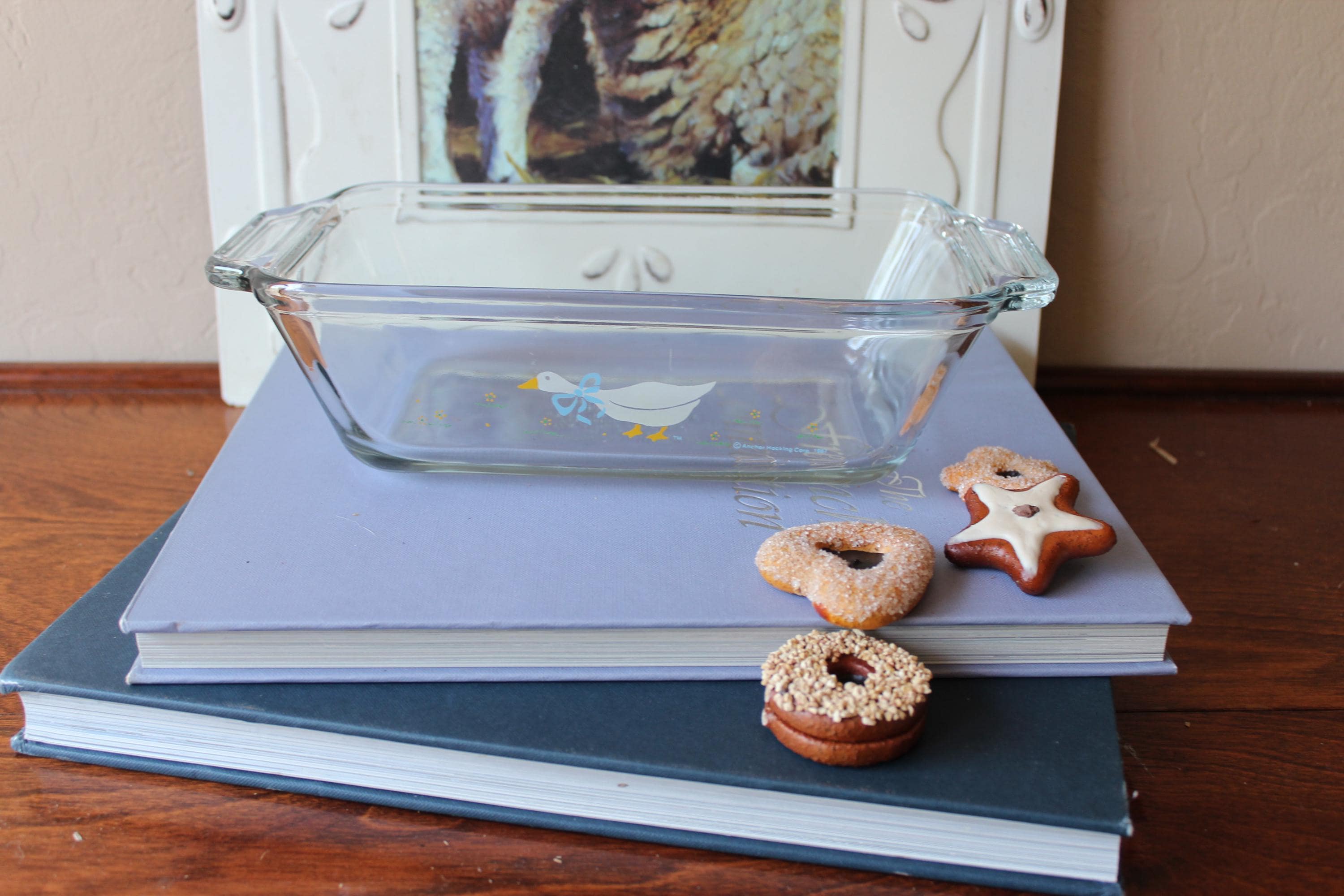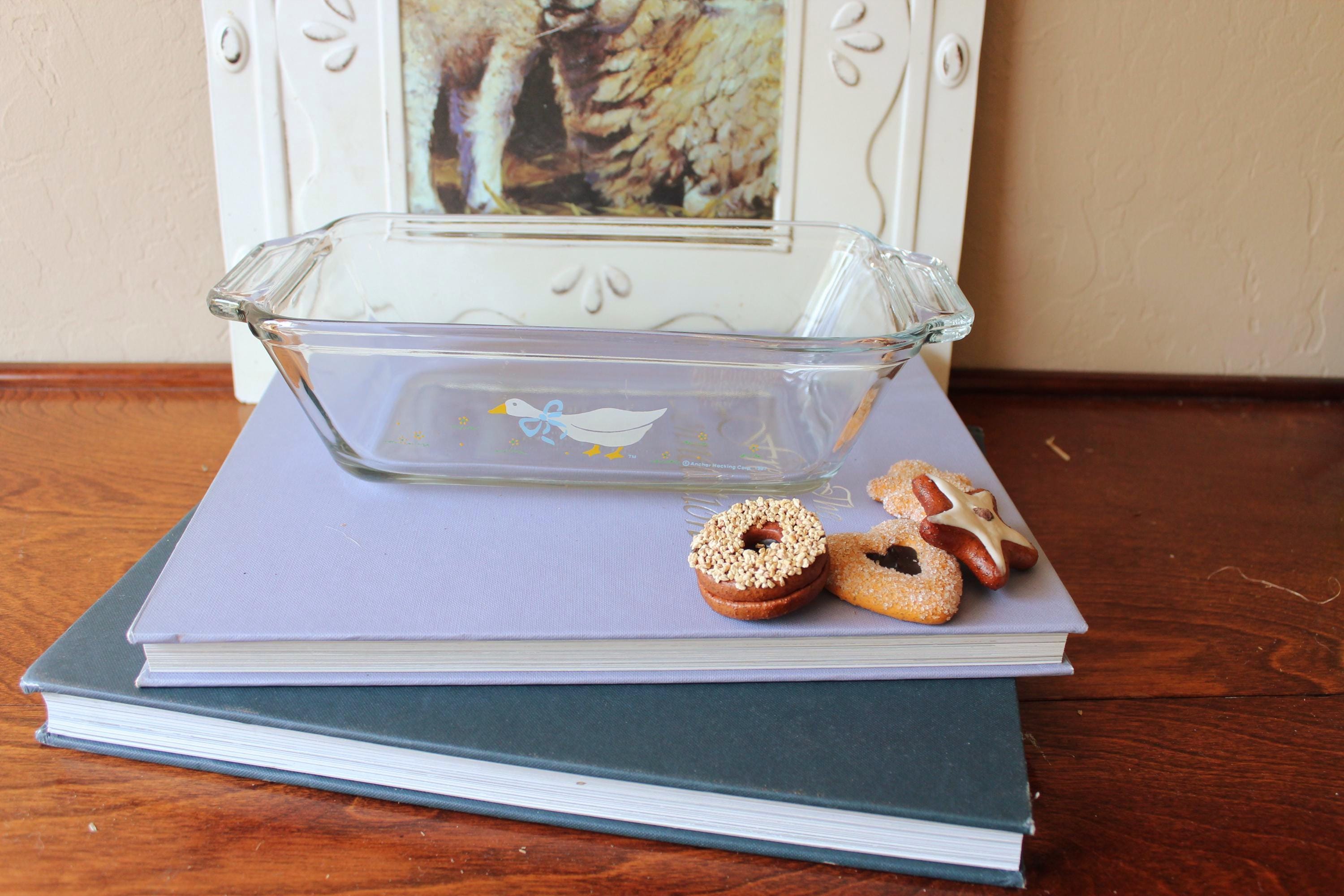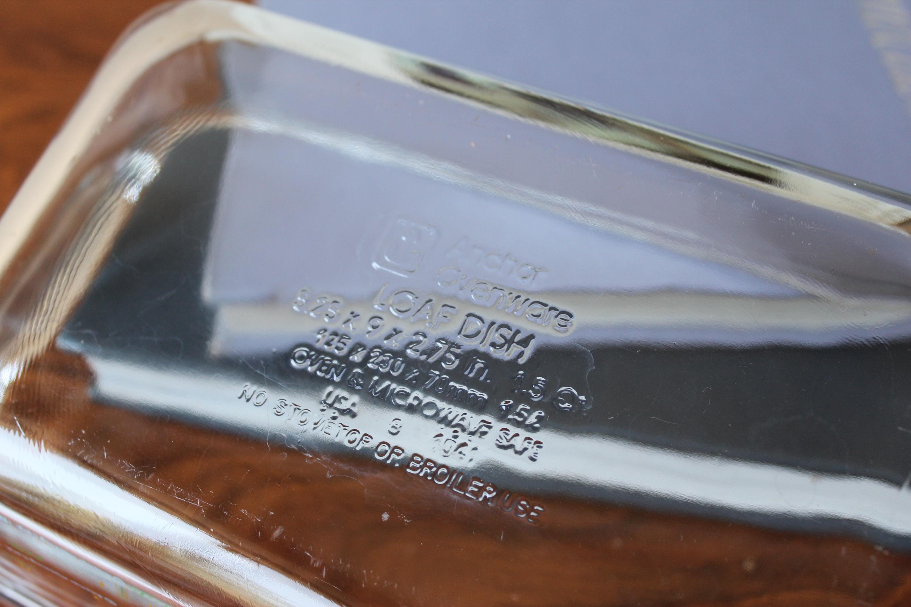 Vintage Anchor Hocking 1987 loaf pan. It is in excellent vintage pre-owned condition with only a few minor scuffs. It is very clean, no chips or cracks. The graphics are great, no scratches. It is fully functional and also an attractive vintage addition to your collection.