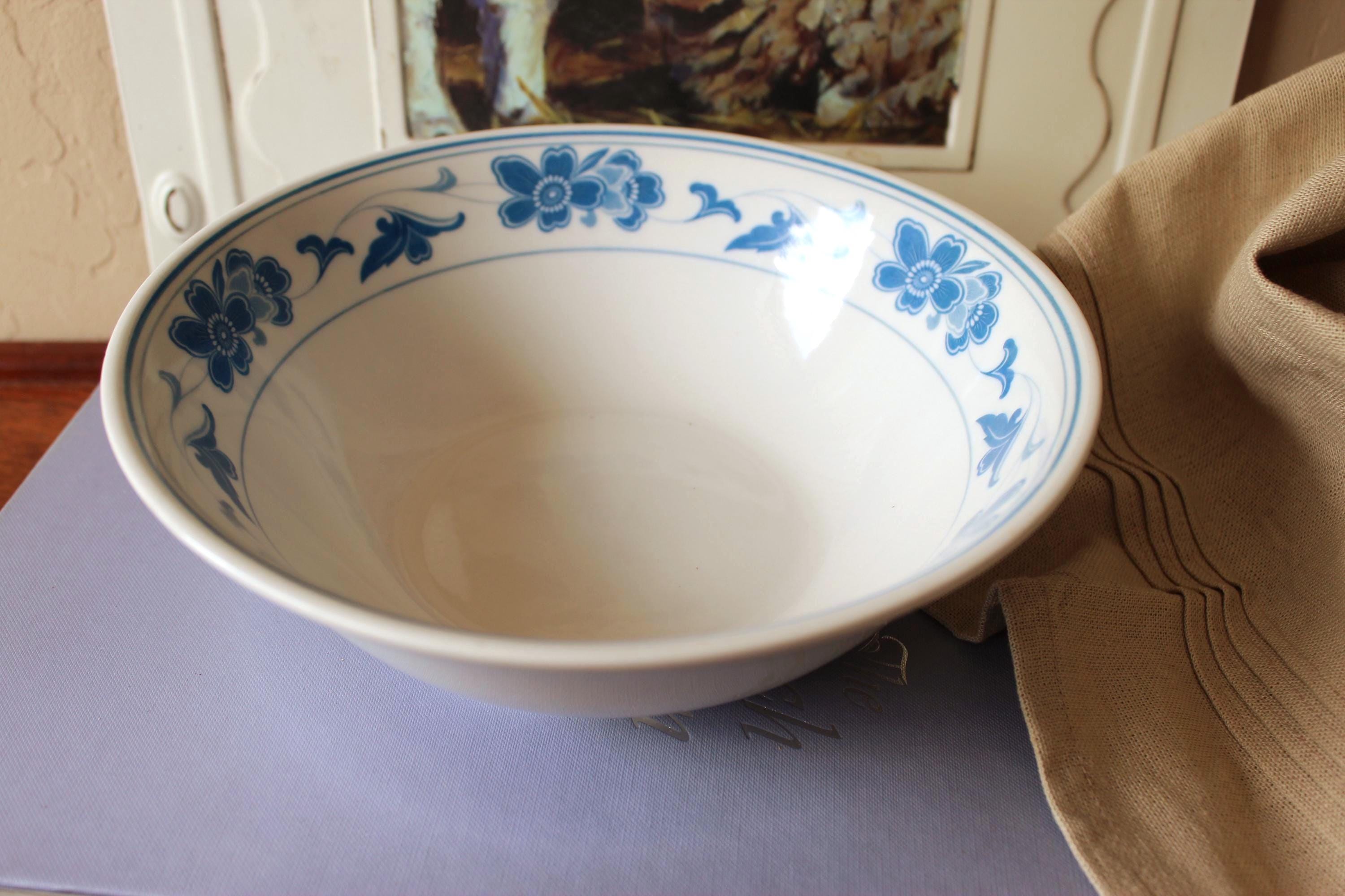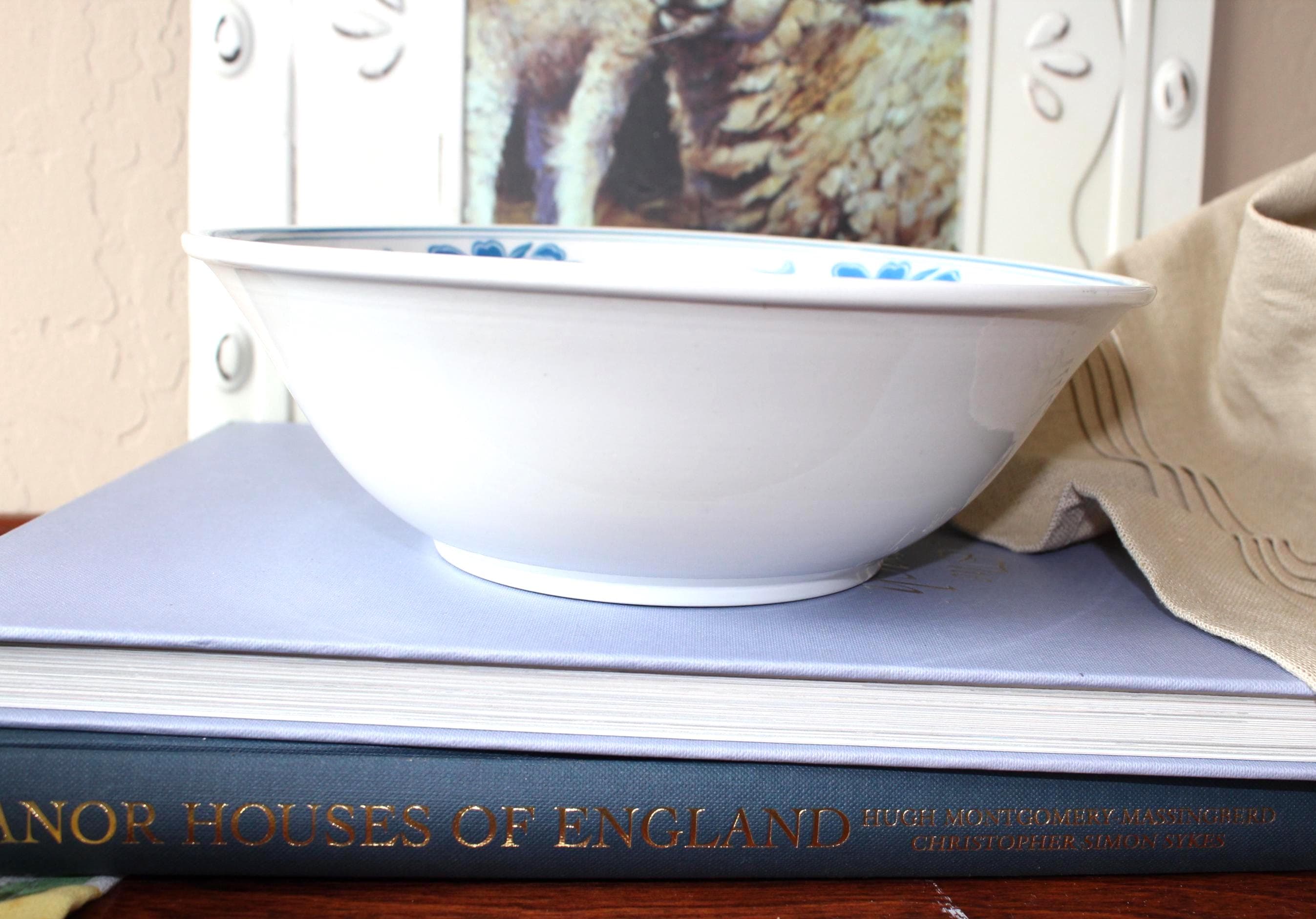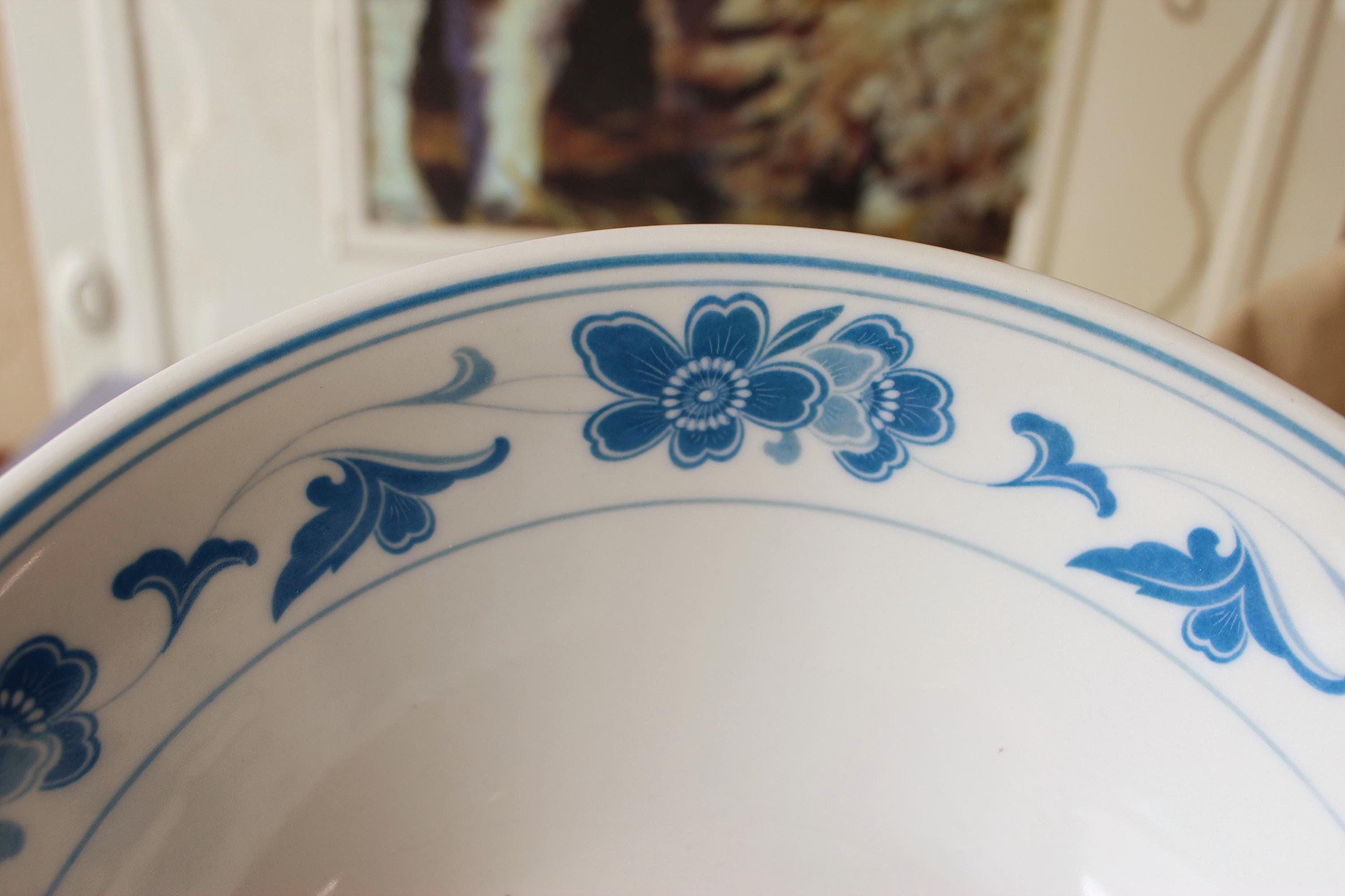 Vintage high quality porcelain from Liling, Hunan Province China, a province renowned for its fine quality china. This bowl features a blue floral design and monochromatic blue underglaze floral band around the inner rim. It was made in the Yeng Shen factory in Liling China between 1960 and 1980. The pattern is a stylized blue floral and vine motif, often referred to as the "Lling Blue Floral" or sometimes "Chateau". Can be used as a serving bowl or fruit bowl. It is in excellent preowned condition. Lovely with matching pieces or to mix and match with your other blue and white collection. Please message with any questions. If you want both bowls, please let me know ahead of your order so I can discount shipping.